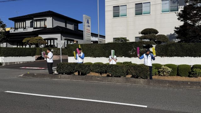 本社前にて、秋の交通安全運動の啓発活動を行いました。