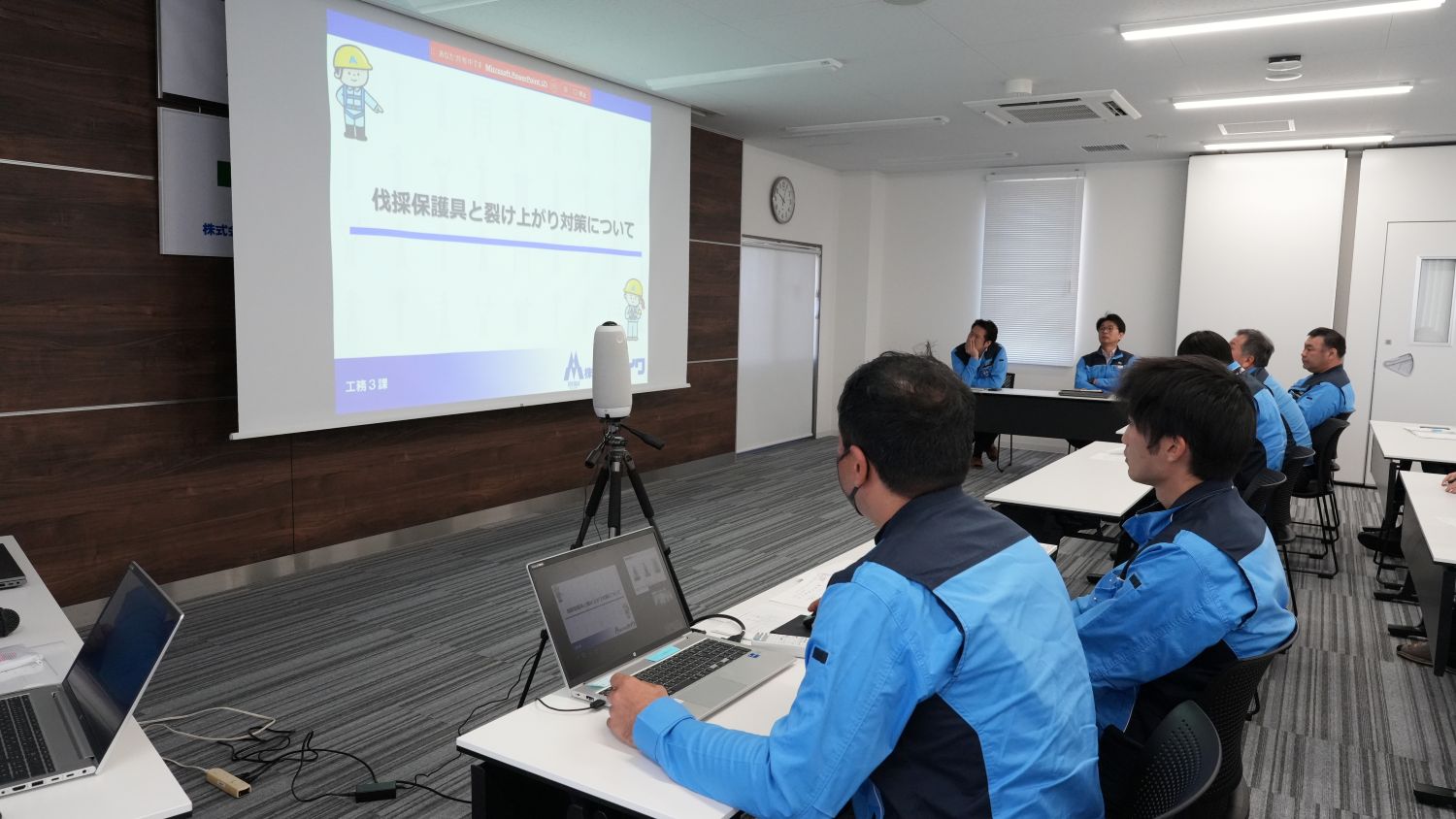 今回は各現場と本社会議室を繋いでリモート形式で実施をしました。