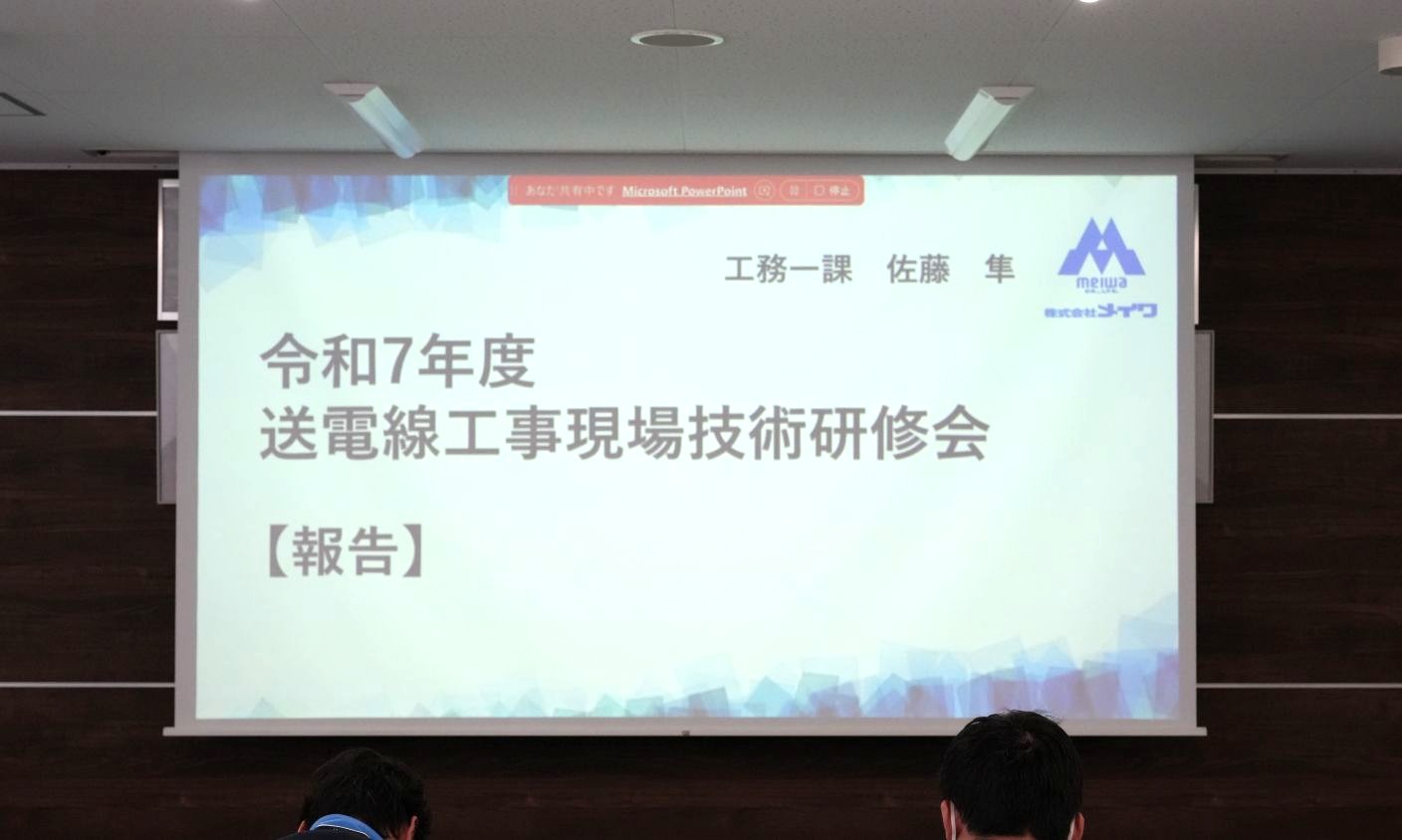 佐藤隼さんより、1月29日、30日に参加した送電線工事現場技術研修会の報告の発表がありました。